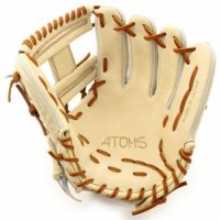 アトムズの「ネオプロフェッショナルライン」シリーズの硬式グローブです。このグラブの特徴は、手首部がERMリストという特殊な形状になっていて、手首下部をくり抜く(細くする)ことで手の可動域が広がりグローブのハンドリング(操作性)が良くなります。レザーにはEuropean Steer Leatherを採用し、しっかり感と軽量感がある硬式グラブです。