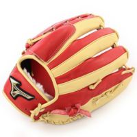 このグローブのサイズは11(ミズノ基準)の投手用。投手用グラブとしては中間サイズで、どちらかと言うと親指と薬指・小指でつかむ縦型(タテ握り)グラブなので、投球時に手のひら全体でグラブを握るピッチャーにおすすめの型です。また、受球面が広いので、握力の無い女子なら、小指二本で使うのもお勧めです。