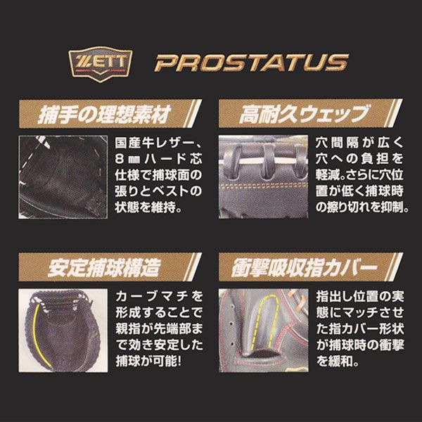 手もみ型付け 硬式キャッチャーミット / ゼット キャッチャーミット 硬式 小林タイプ 右投げ プロステイタス 硬式 中学硬式 キャッチャーミット 高校野球対応 中学生 高校生 野球 zett 硬式 型付け bprocm920-3200