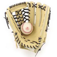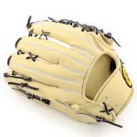 グローブのサイズは土手から指先まで約32cmで外野用の中でも大き目。軽くて操作性が良く、親指と小指が良く開く形状です。ポケットは深くも浅くも作れる型で、小指二本入れで使うことも可能です。