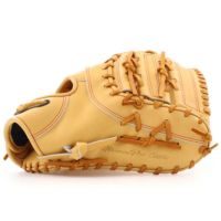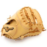 このファーストミットの型はTK型で、キャッチングエリアが広いボックス仕立てで、しっかりとした捕球ができるオーソドックスなモデル。扱いやすいので、とても人気がある型です。新色のジャスミンというカラーで、人気のブロンド(キャメル)系の中でも他とは少し違う「個性を発揮できる」カラーだと思います!